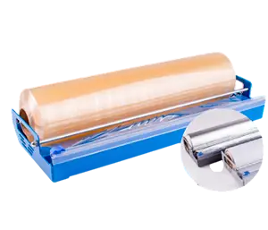 Una solución compacta y super práctica, que permite administrar y cortar prolijamente film de PVC, aluminio y papel manteca